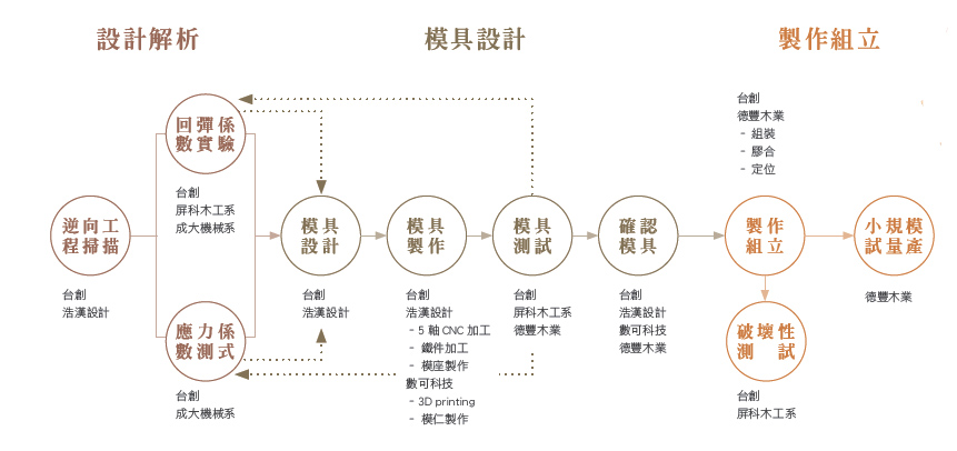 2. 結合跨領域專家,引進跨產業之生產技術與經驗,導入模具生產作法,克服工藝品無法量產之瓶頸。